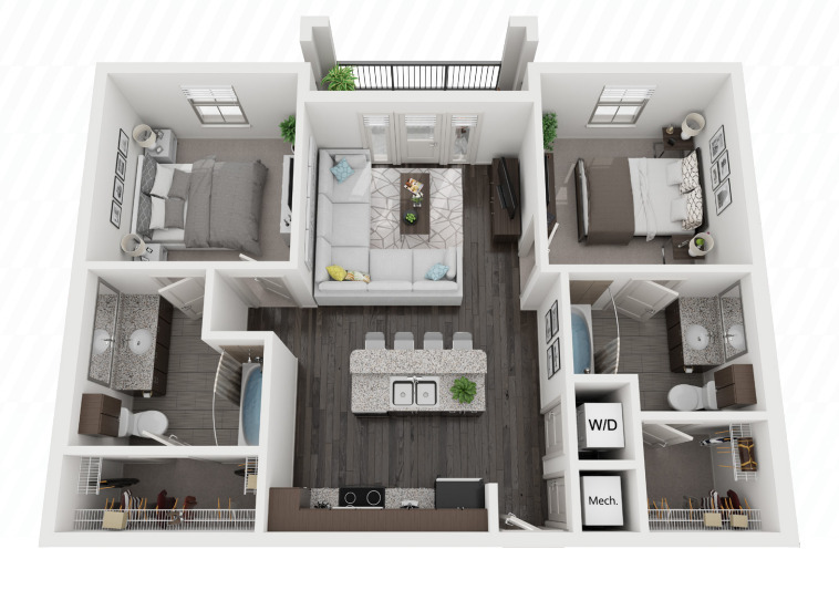2 Beds, 2 Baths, 836 sq ftAvailable August 21, 2026Model Gallery