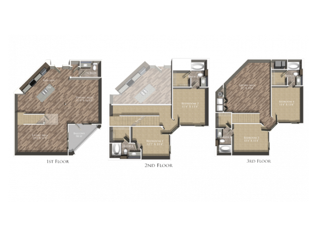 The Union - 4x4 - Floorplan 2 Apartment Unit: PrivateApartment Model: The Union - 4x44 Bedroom, 4 Bath, 1435 sq ftAvailable August 21, 2026The Cypress - 4x4.5
