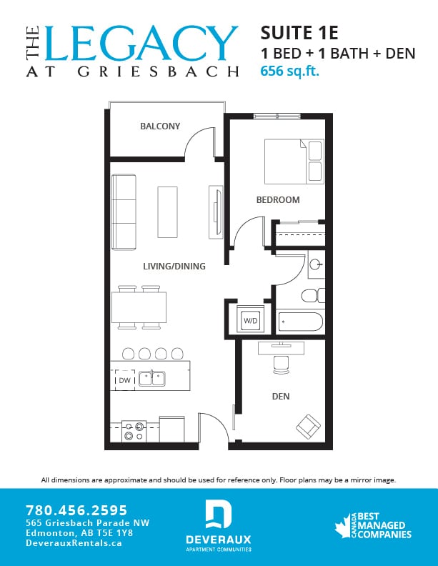 1 Bedroom, 1 Bathroom + Den - Floorplan 1 ![]()
