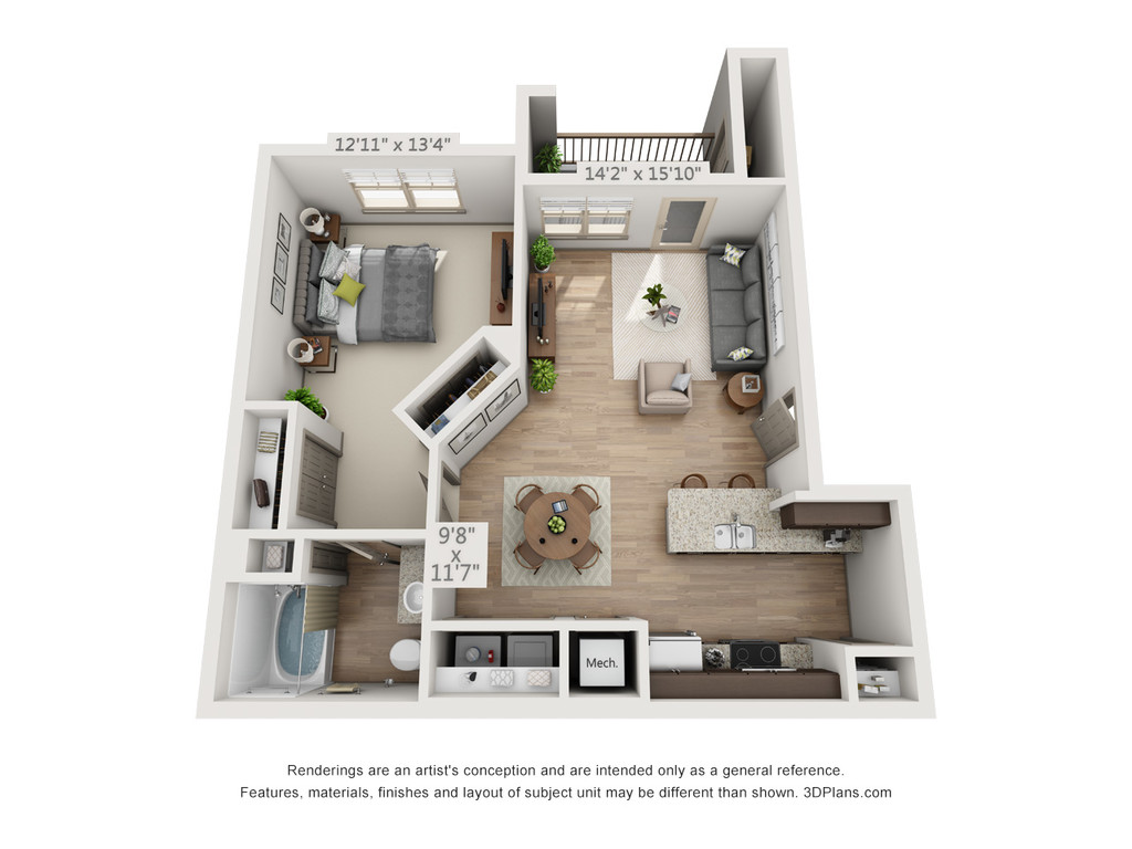 1 Bed, 1 Bath, 850 sq ftLargest 1 BedroomThis is the largest 1 Bedroom at this PropertyModel Gallery
