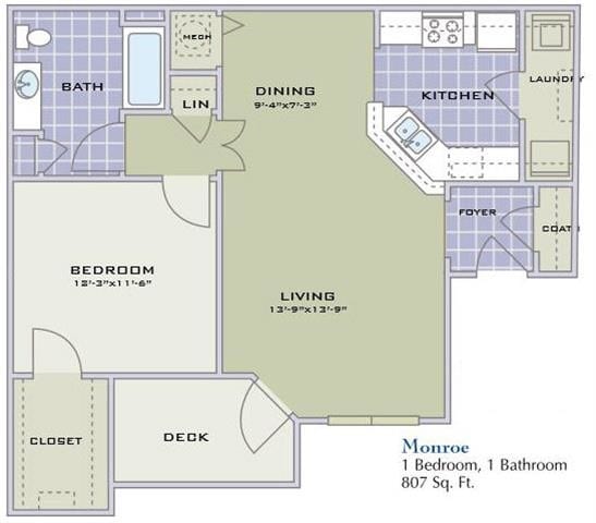 Apartment Model: MonroeFrom $1,3641 Bedroom, 1 Bath, 807 sq ftAvailable Now![]()