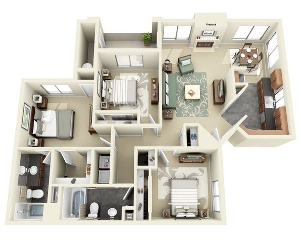 Apartment Model: Three BedroomFrom $1,7593 Bedroom, 2 Bath, 1280 sq ftAvailable Now![]()