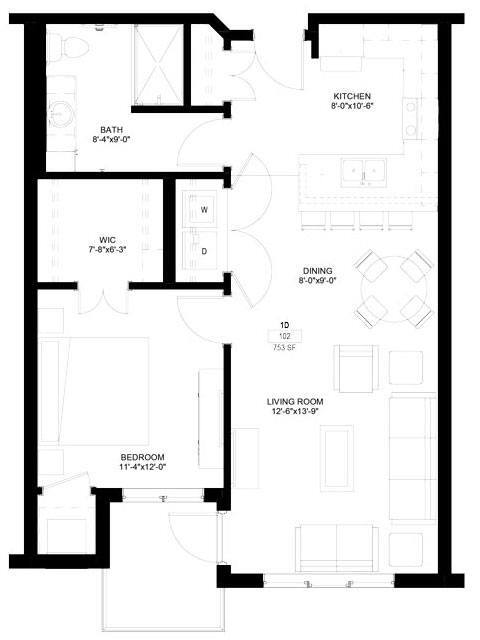 One Bedroom - D - Floorplan 1 Apartment Unit: 416Apartment Model: One Bedroom - D$1,4391 Bedroom, 1 Bath, 753 sq ftAvailable Now2 Bedrooms