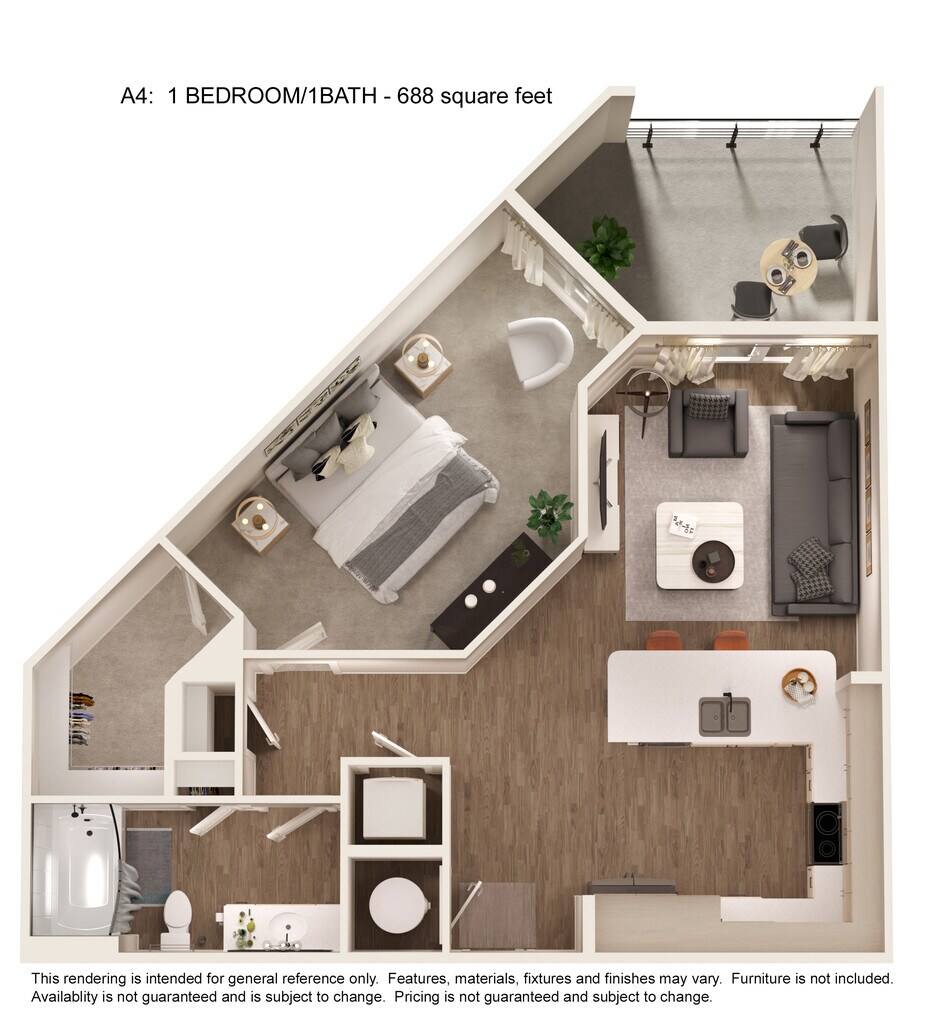1 Bed, 1 Bath, 688 sq ftAvailable NowModel Gallery