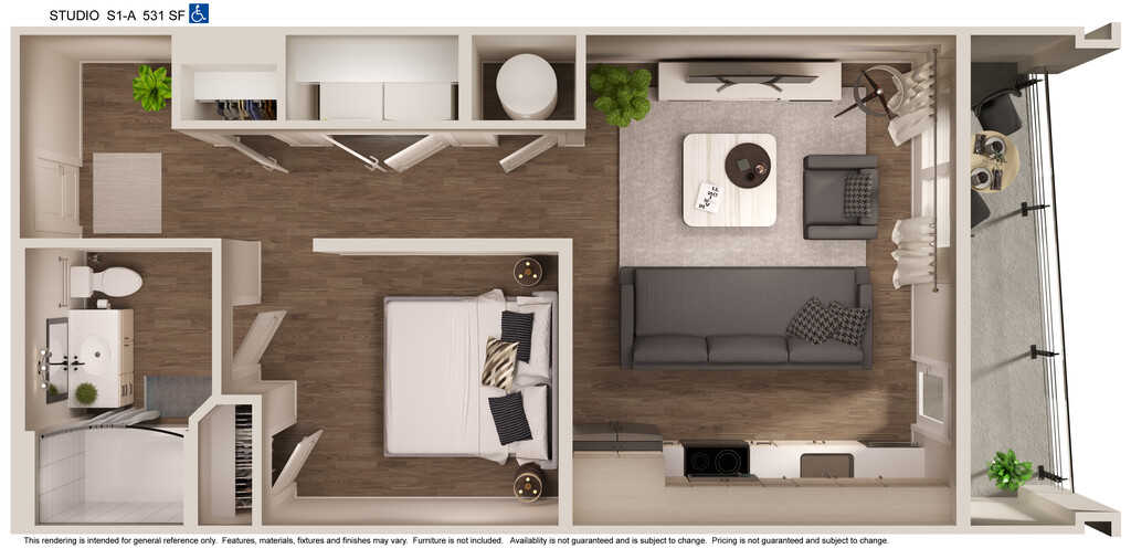 Apartment Model: S1-A Handicap$1,3201 Bedroom, 1 Bath, 531 sq ftAvailable NowS1-A Handicap - Floorplan 1 Apartment Unit: 109Apartment Model: S1-A Handicap$1,3201 Bedroom, 1 Bath, 531 sq ftAvailable NowS1-A Handicap *