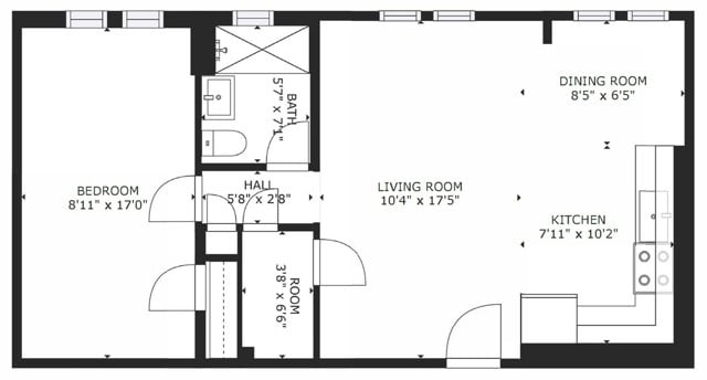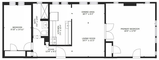 1 Bedroom, 1 Bath - Floorplan 8 ![]()