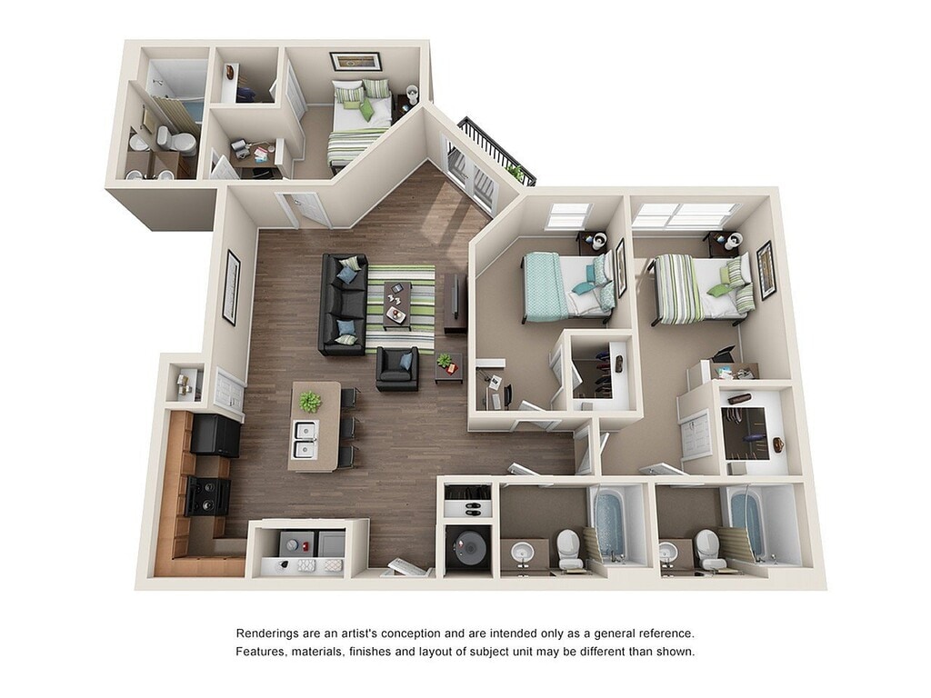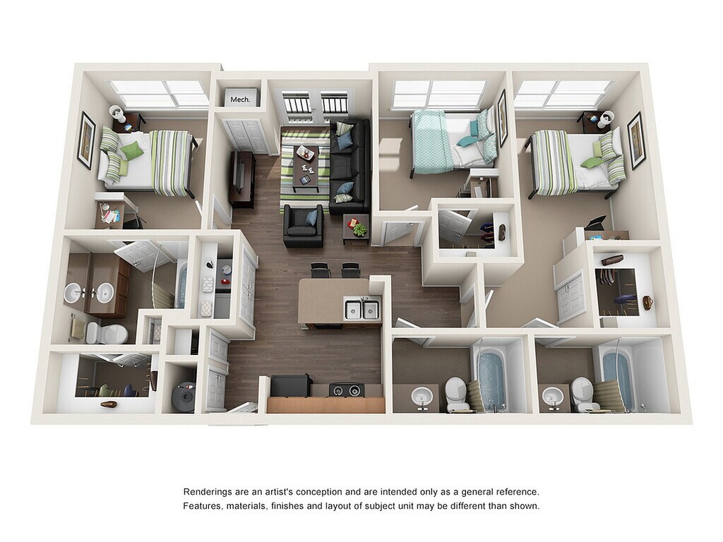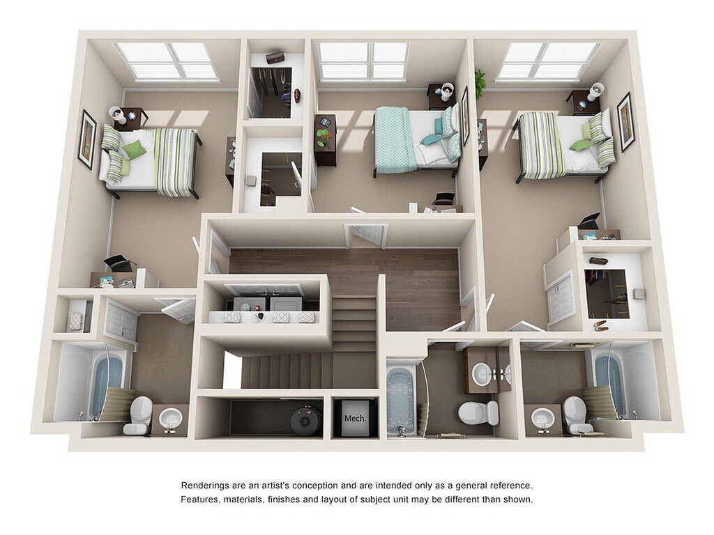 3 Beds, 3 Baths, 1582 sq ftAvailable August 19, 2026Largest 3 BedroomThis is the largest 3 Bedroom at this PropertyModel Gallery