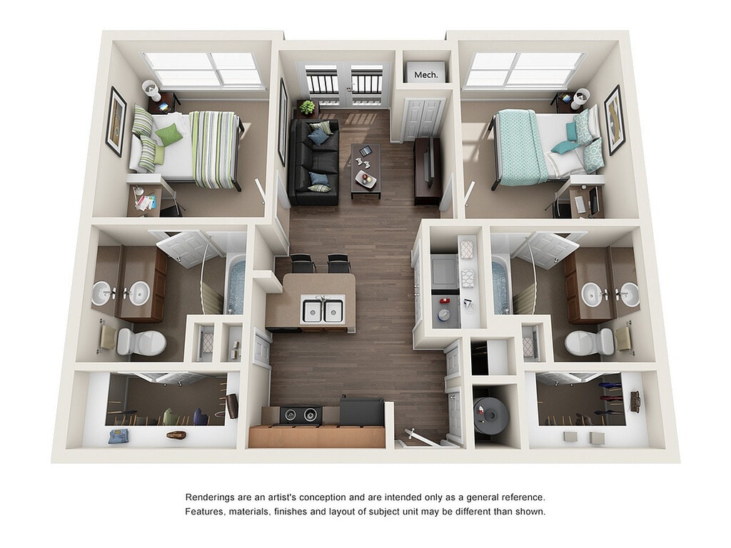 2 Beds, 2 Baths, 930 sq ftAvailable August 19, 2026Model Gallery