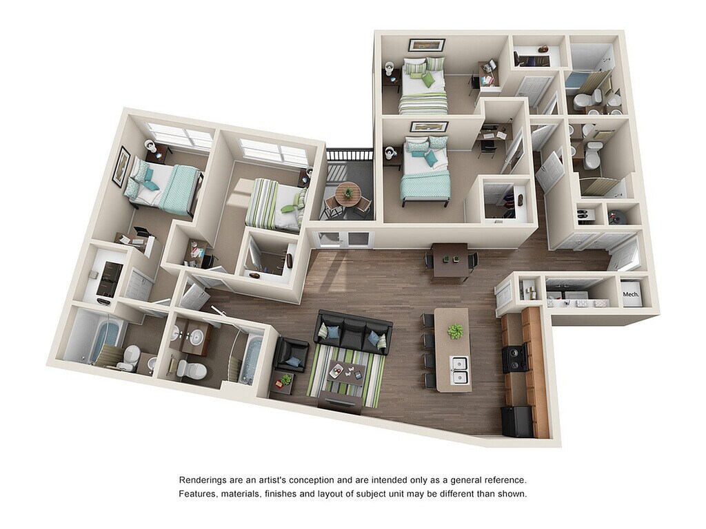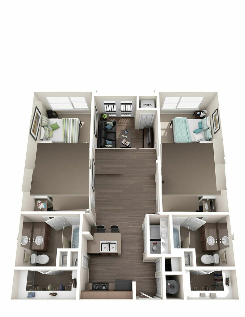 Apartment Model: 3x3 Deluxe3 Bedroom, 3 Bath, 1098 sq ftAvailable August 19, 2026![]()