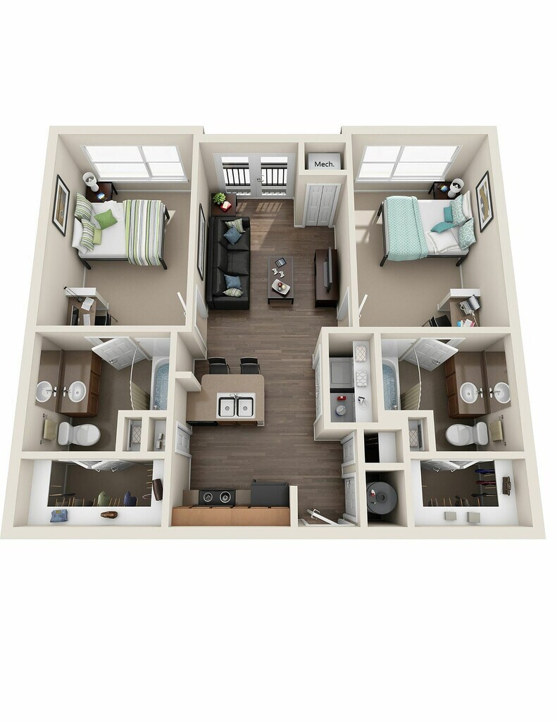 2x2 Deluxe - Floorplan 3 Apartment Unit: PrimaryApartment Model: 2x2 Deluxe2 Bedroom, 2 Bath, 930 sq ftAvailable August 19, 2026Apartment Unit: PrivateApartment Model: 2x2 Deluxe2 Bedroom, 2 Bath, 930 sq ftAvailable August 19, 20263 Bedrooms