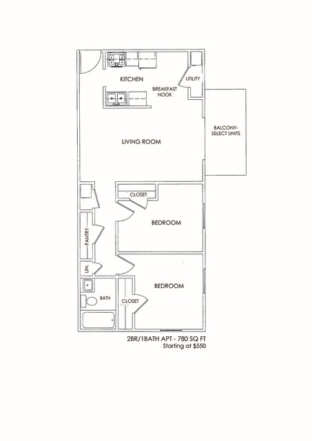 Apartment Model: 1 BED 1 BATHFrom $8751 Bedroom, 1 Bath, 550 sq ftAvailable Now![]()