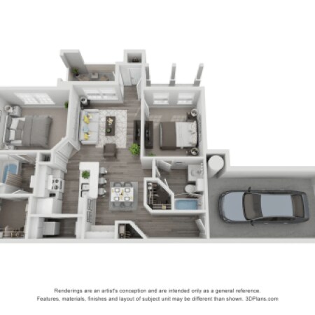 Apartment Model: B2Call For Rates2 Bedroom, 2 Bath, 1025 sq ftUnavailableFloor plans are artist's rendering. All dimensions are approximate. Actual product and specifications may vary in dimension or detail. Not all features are available in every rental home. Please see a representative for details.