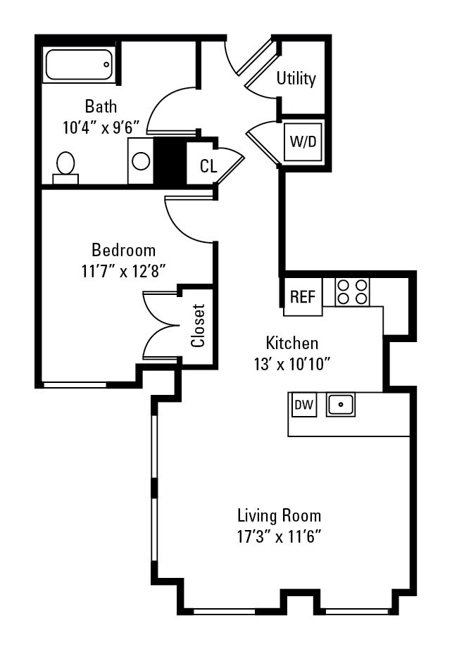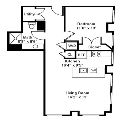 1 Bedroom 1 Bath - Floorplan 1 1 Bedroom 1 Bath