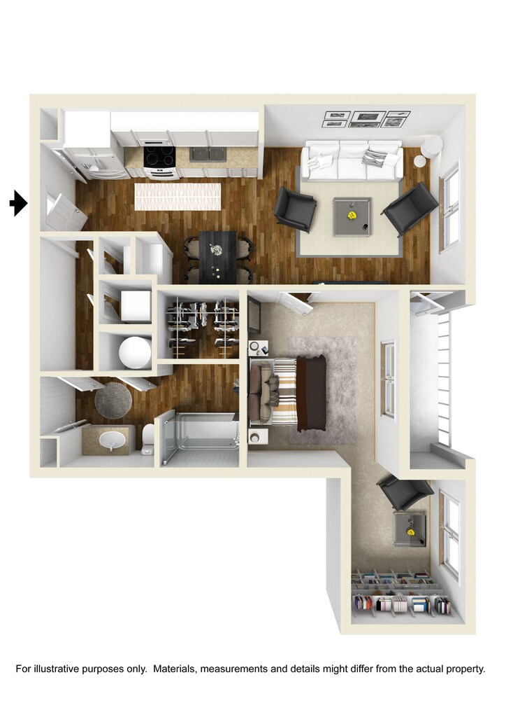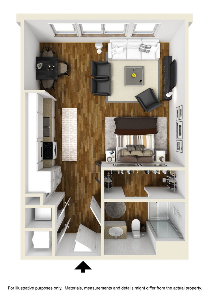 Studio, 1 Bath, 553 sq ftAvailable NowModel Gallery