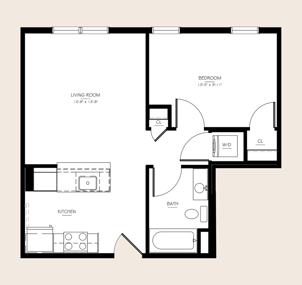 Unit D - Floorplan 1 Apartment Unit: 614Apartment Model: Unit D$2,1501 Bedroom, 1 Bath, 544 sq ftAvailable NowUnit E