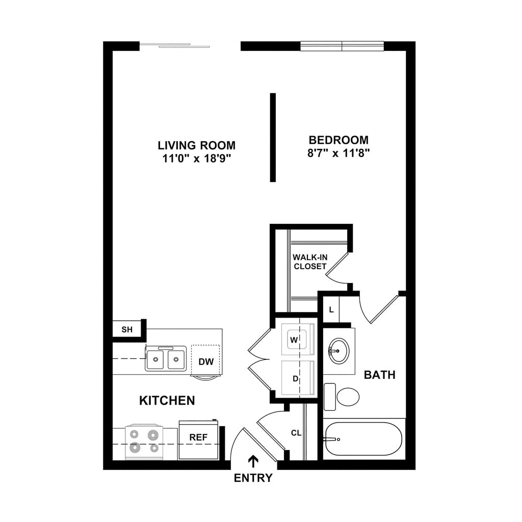 1 Bed, 1 Bath, 718-768 sq ftAvailable January 18, 2026Model Gallery