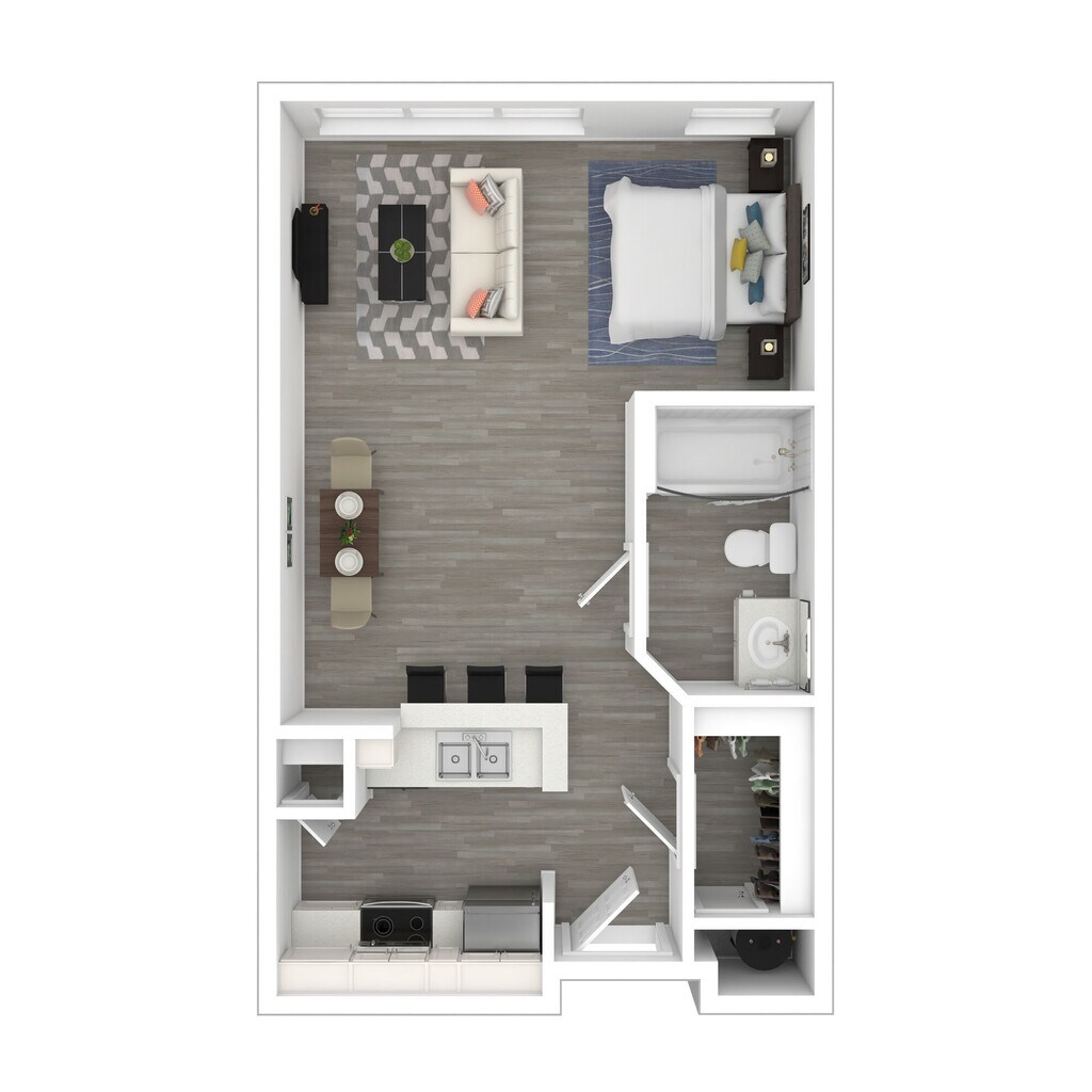 1 Bed, 1 Bath, 466-590 sq ftModel Gallery