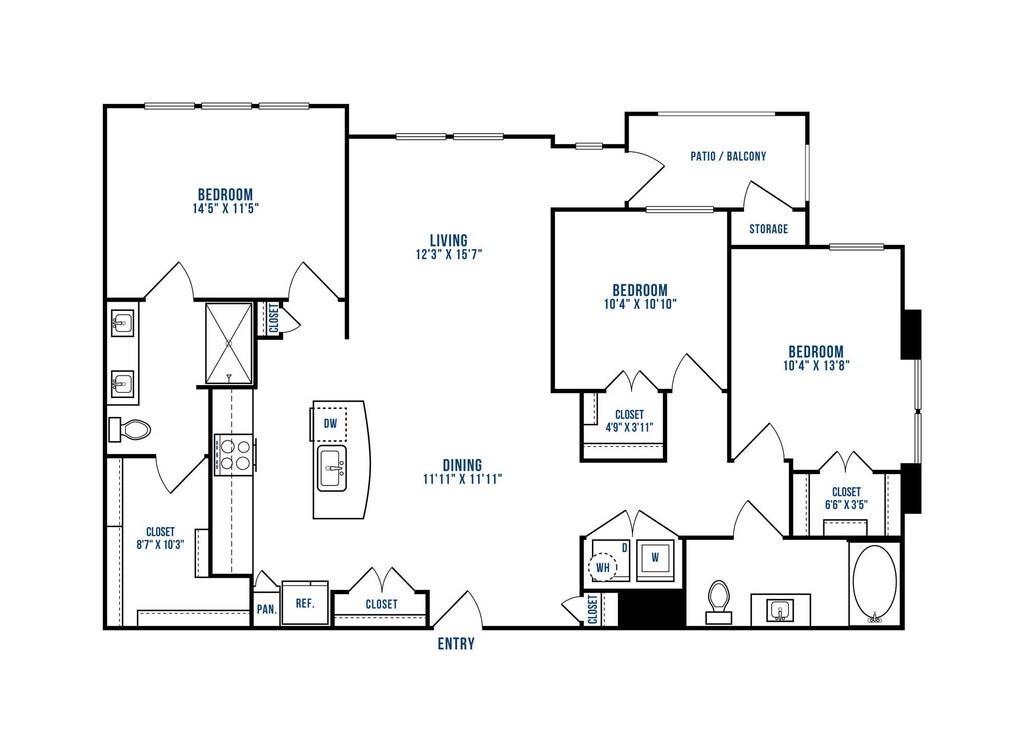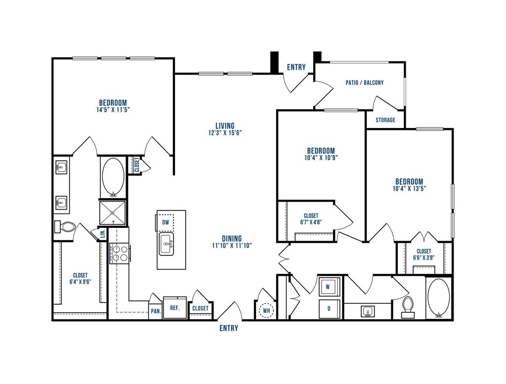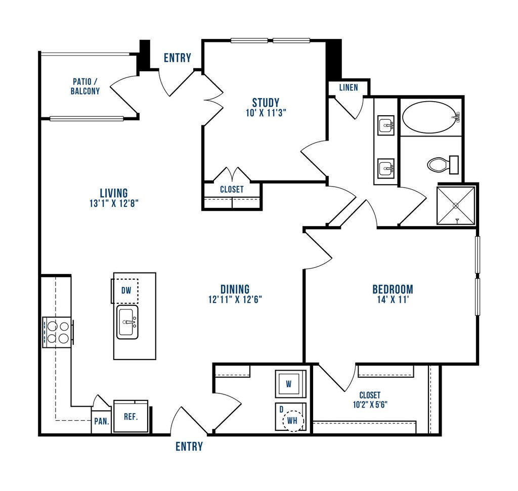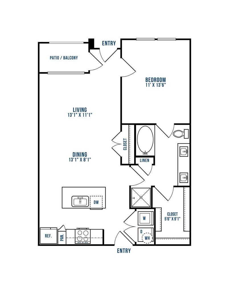 Apartment Model: A3From $1,4361 Bedroom, 1 Bath, 789 sq ftAvailable NowFloor plans are artist's rendering. All dimensions are approximate. Actual product and specifications may vary in dimension or detail. Not all features are available in every rental home. Prices and availability are subject to change. Base rent is based on monthly frequency. Additional fees may apply, such as but not limited to package delivery, trash, water, amenities, etc. Deposits vary. Please see a representative for details.