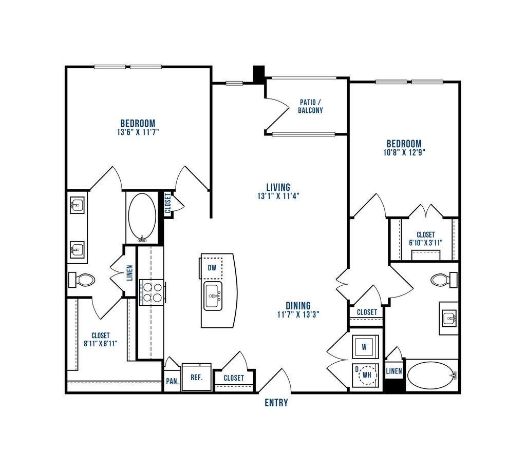 A8 - Floorplan 1 Apartment Unit: E215Apartment Model: A8$1,4371 Bedroom, 1 Bath, 828 sq ftAvailable NowFloorplan A2