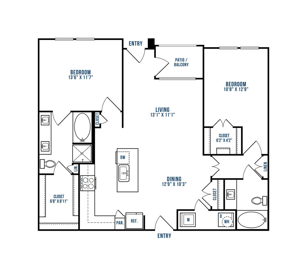 Apartment Model: A2$1,4571 Bedroom, 1 Bath, 786 sq ftAvailable NowFloor plans are artist's rendering. All dimensions are approximate. Actual product and specifications may vary in dimension or detail. Not all features are available in every rental home. Prices and availability are subject to change. Base rent is based on monthly frequency. Additional fees may apply, such as but not limited to package delivery, trash, water, amenities, etc. Deposits vary. Please see a representative for details.