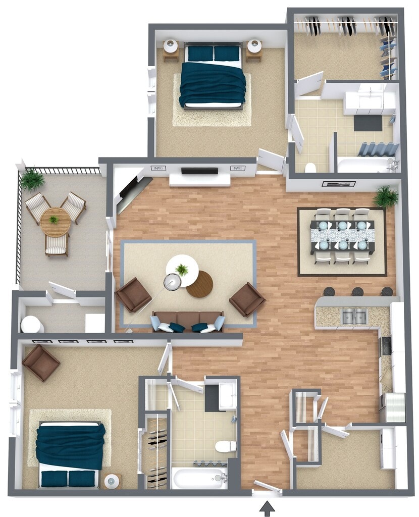 2 Beds, 2 Baths, 1075 sq ftModel Gallery