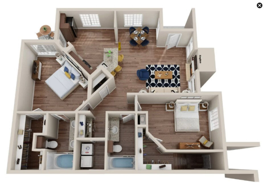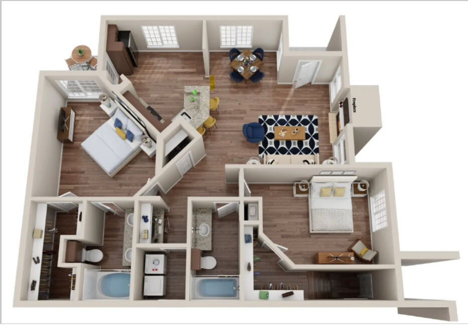 2 Beds, 2 Baths, 1182-1252 sq ftAvailable NowLargest 2 BedroomThis is the largest 2 Bedroom at this PropertyModel Gallery