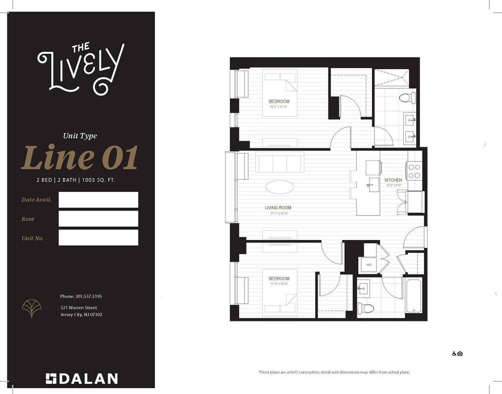 Choose a lifestyle that radiates style and sophistication at The Lively Apartments. Our Jersey City apartments blend urban energy with upscale comforts, placing you in the heart of the Powerhouse Arts District. From resort-inspired amenities to luxurious interiors, every detail invites you to live your best life in these layouts. Unwind in your spacious abode with in-unit washers and dryers, modern kitchens, and high ceilings. Outside, discover a rooftop terrace with skyline views, a speakeasy-style lounge, and a resort-style pool designed for your relaxation. And with PATH stations just steps away, Manhattan is always within reach.
