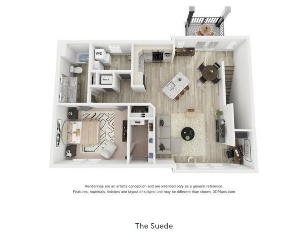 Apartment Model: The Suede$1,6751 Bedroom, 1 Bath, 1048 sq ftAvailable Now![]()