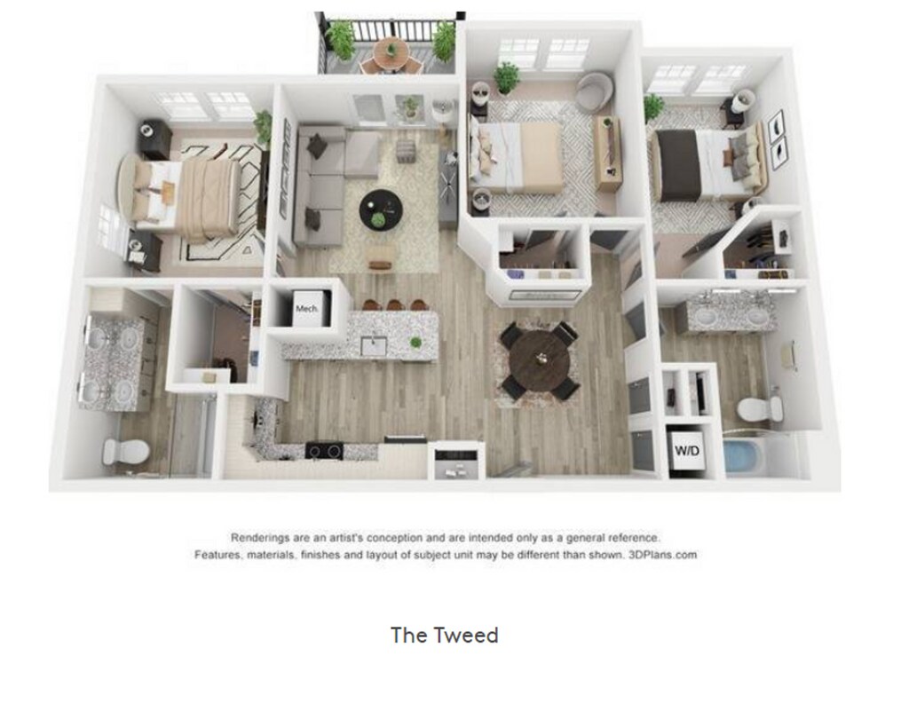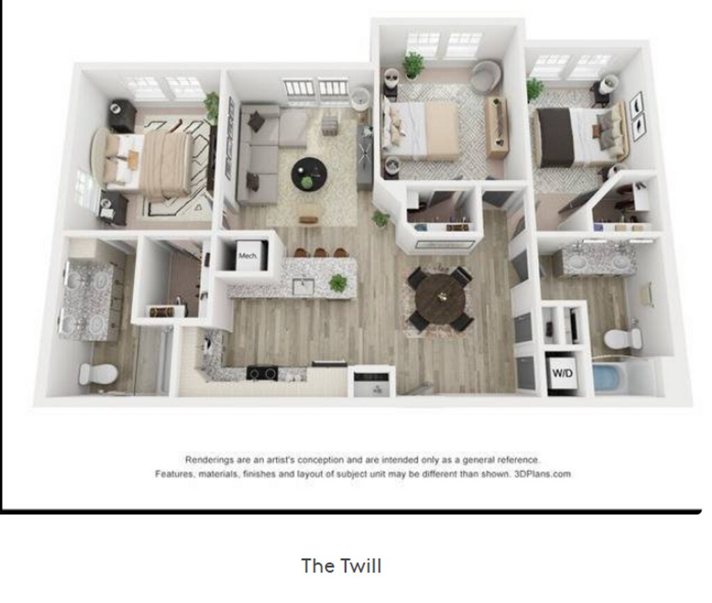 2 Beds, 2 Baths, 1205 sq ftAvailable NowLargest 2 BedroomThis is the largest 2 Bedroom at this PropertyModel Gallery
