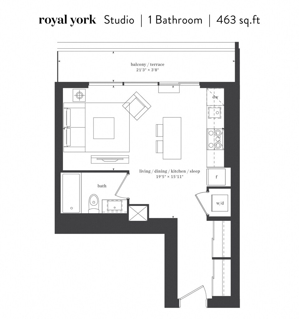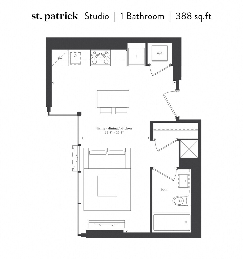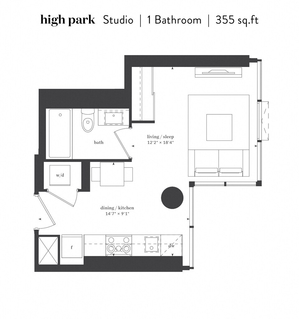 Studio, 1 Bath, 424-464 sq ftAvailable Oct 7Model Gallery