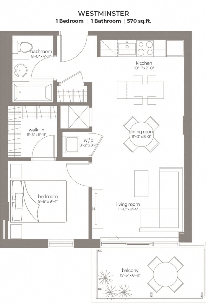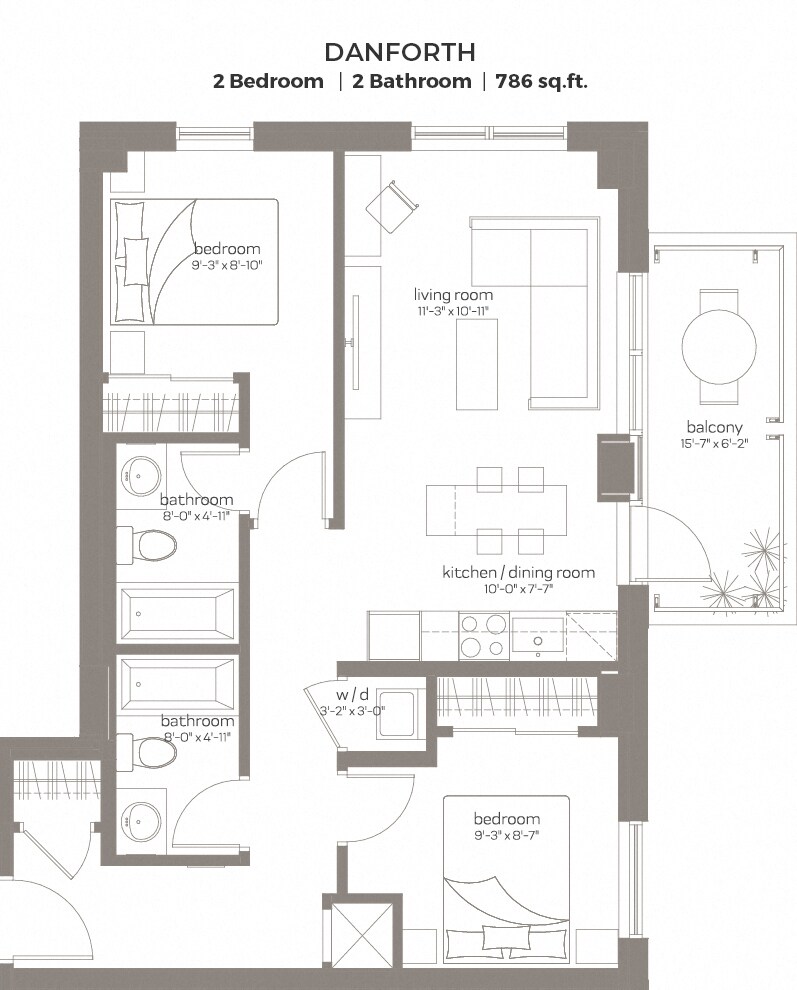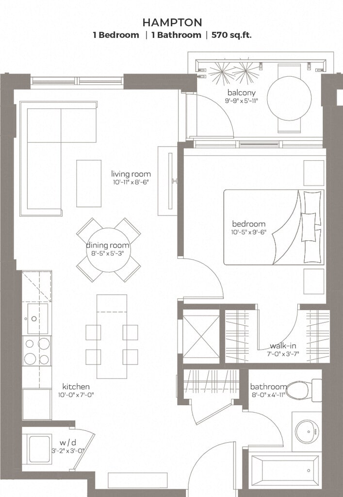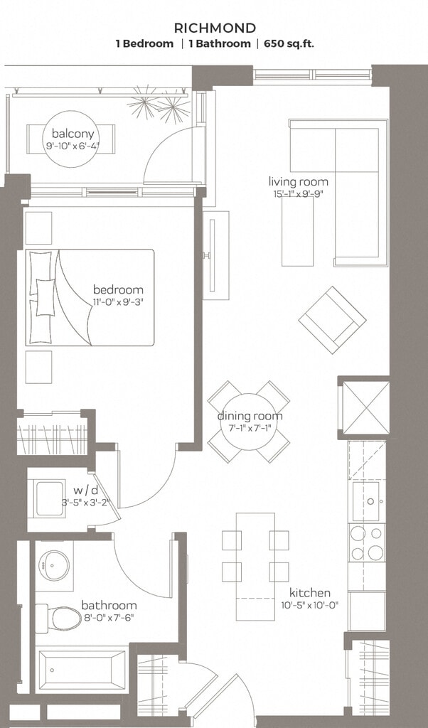 1 Bed, 1 Bath, 495-732 sq ftAvailable NowModel Gallery