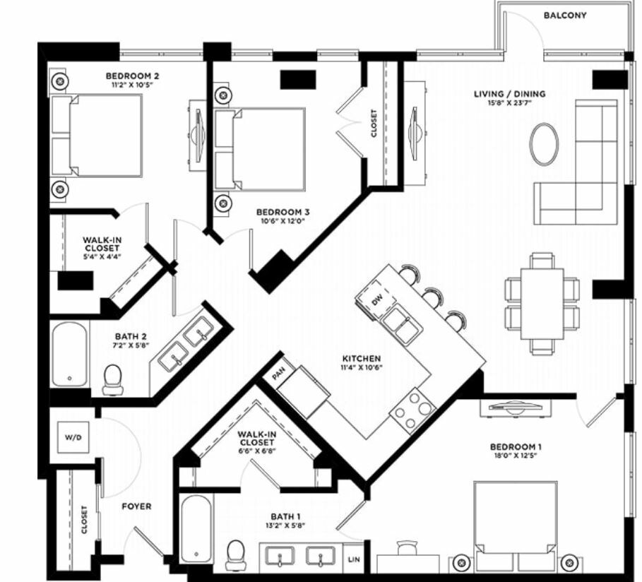 Apartment Model: 3 Bed/2 Bath3 Bedroom, 2 Bath, 1563 sq ftAvailable Now![]()
