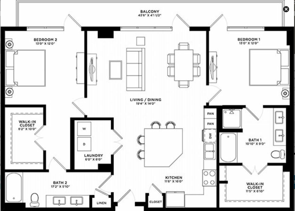 2 Bed/2 Bath - Floorplan 1 2 Bed/2 Bath