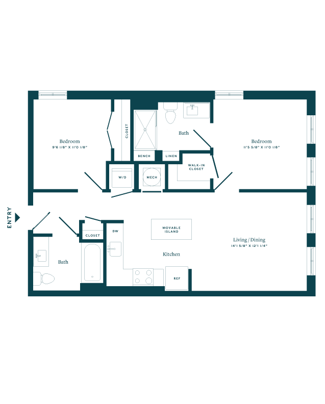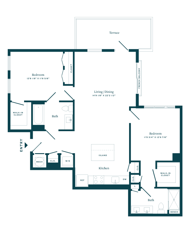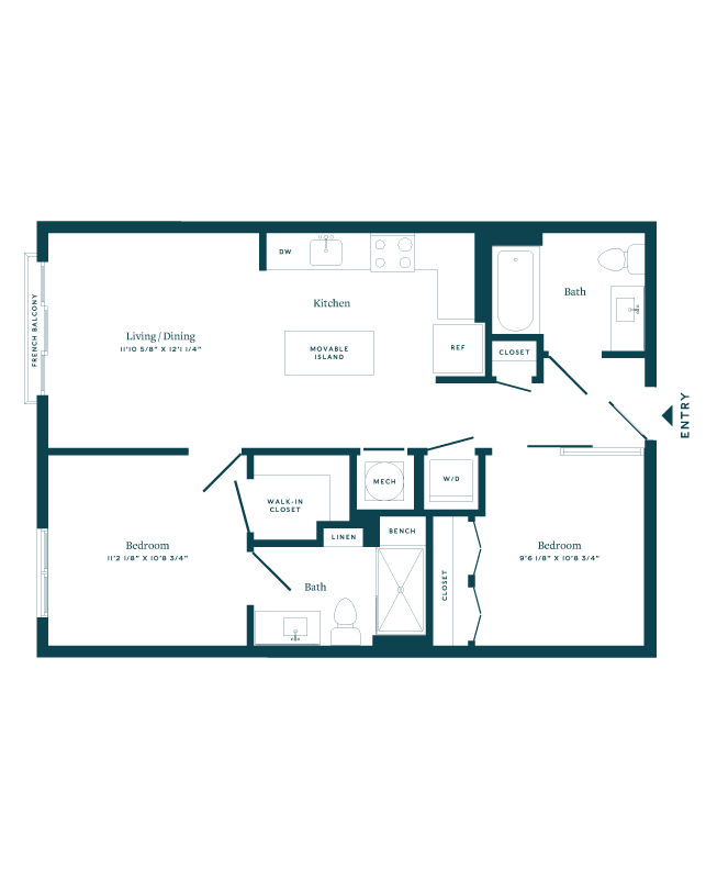 Apartment Model: 1 Bed/2 Bath Den-B02From $3,1921 Bedroom, 2 Bath, 870 sq ftAvailable Now![]()