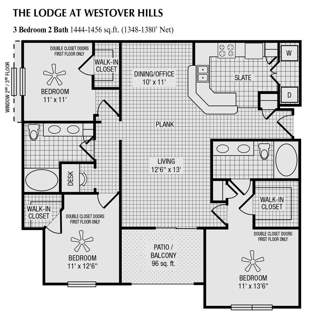 The Lodge At Westover Hills offers 1 to 3 Bedroom apartments starting from $1,023 and having 648–1,464 sq ft. Here is the current pricing and availability: