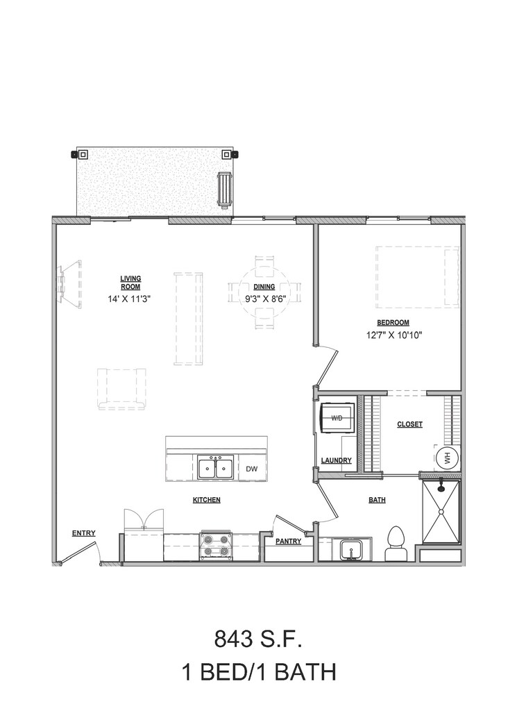 1 Bed, 1 Bath, 843 sq ftLargest 1 BedroomThis is the largest 1 Bedroom at this PropertyModel Gallery