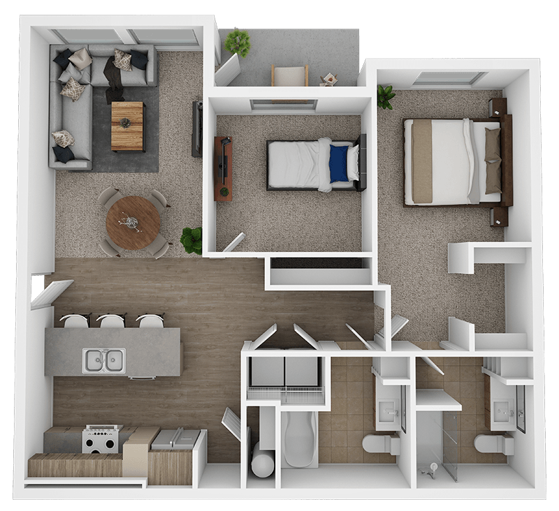 2 Beds, 2 Baths, 1005 sq ftAvailable NowModel Gallery