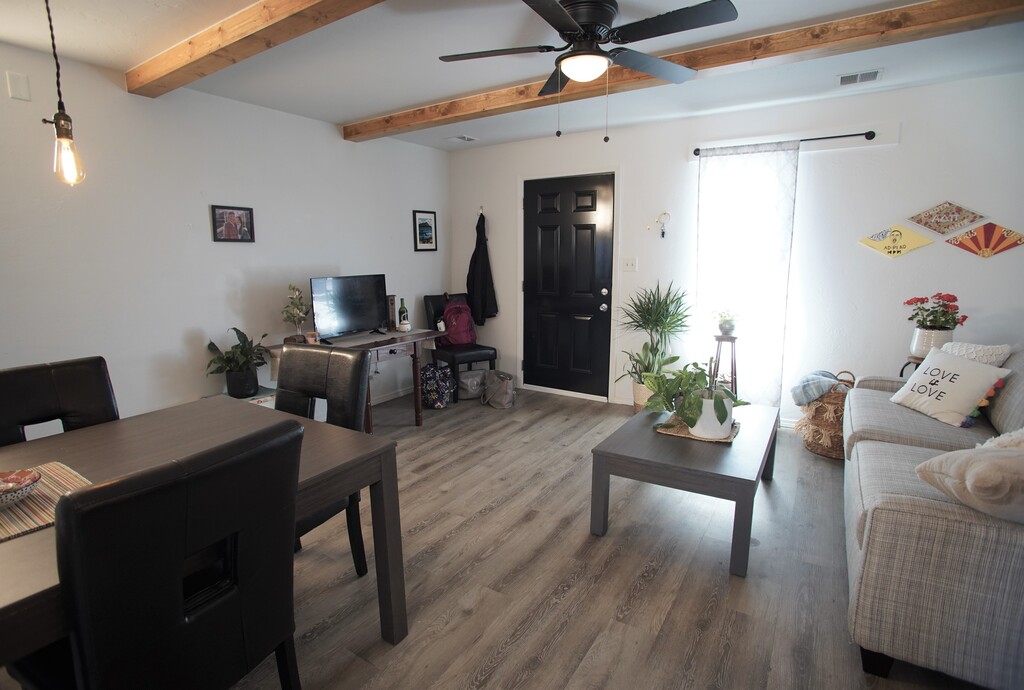 Welcome to The Lodge! These two-bedroom, one-bathroom units were completely renovated in 2020 with amenities like granite countertops, stainless steel appliances, plank flooring, and new windows. Every unit includes a washer, dryer, refrigerator, stove, and dishwasher. Enjoy the convenience of off-campus living with the luxury of being just as close as most on-campus housing. We pay water, sewer and trash. Fiber Internet available through BluePeak. Call us today to schedule a tour.