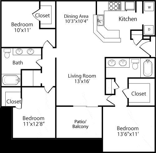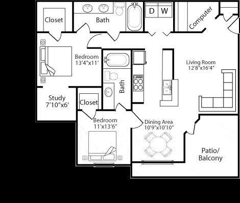 Apartment Model: New Hope ClassicFrom $9651 Bedroom, 1 Bath, 802 sq ftAvailable Now![]()