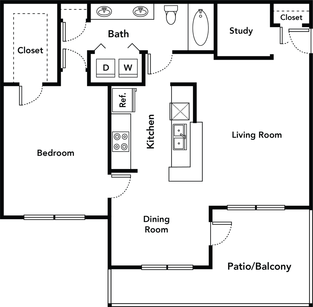 1 Bed, 1 Bath, 954 sq ftAvailable NowLargest 1 BedroomThis is the largest 1 Bedroom at this PropertyModel Gallery