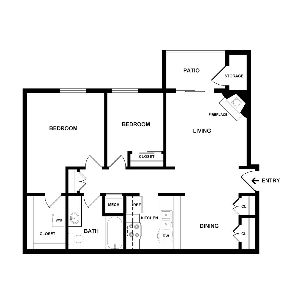 2 Beds, 1 Bath, 840 sq ftAvailable NowModel Gallery