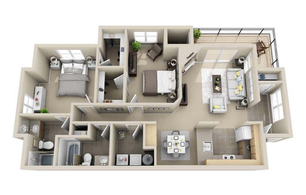 2x2 1051-1079 sq. ft. The Greystone - Image 6 ![]()