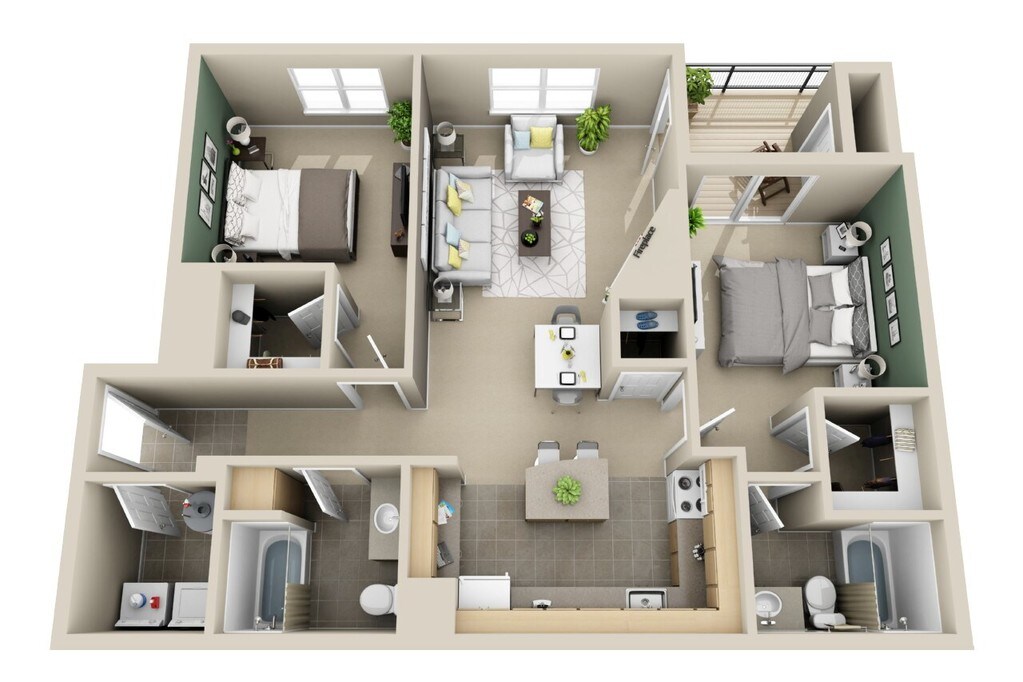 2 Beds, 2 Baths, 1086 sq ftModel Gallery