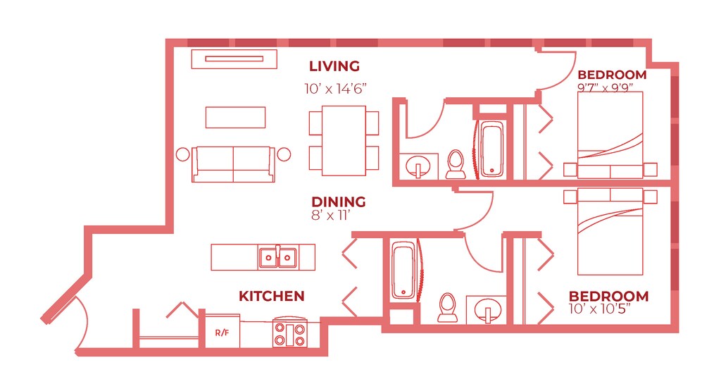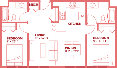 2 Beds, 1 Bath, 897 sq ftAvailable Dec 23Model Gallery