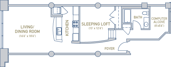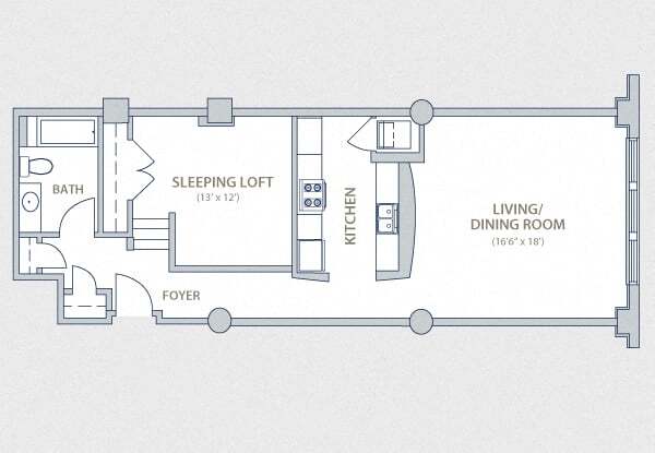 1M Loft - Floorplan 1 Apartment Unit: 0205Apartment Model: 1M Loft$1,9751 Bedroom, 1 Bath, 890 sq ftAvailable Now1G Loft