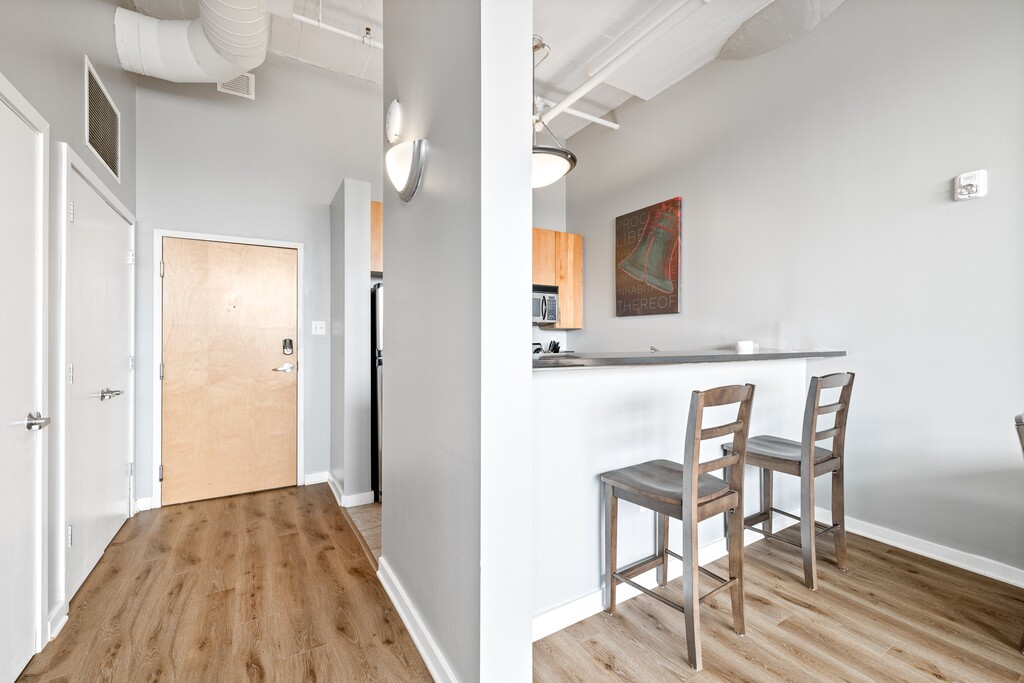 About The Lofts at 509 Vine Great Loft Apartments, with large picture windows and fantastic views! Amazing units with 14 ft ceilings, washer & dryer, dishwasher, hardwood floors, and granite counter tops! New amenity space with a fitness center, yoga room, and a game room! Prime location in Philadelphia just minutes from the Ben Franklin Bridge & Center City.