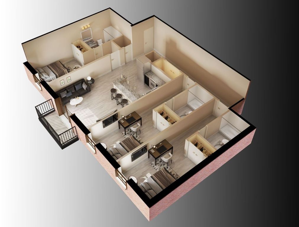 Apartment Model: 4 BedroomFrom $5994 Bedroom, 4 Bath, 1250-1550 sq ftAvailable Now![]()