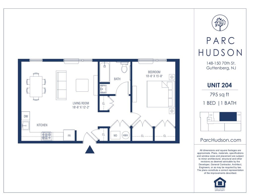 - 1 Bedroom- Parc Hudson 204- $2,4001 Bed, 1 Bath, 795 sq ftAvailable Now- Model Gallery- Floorplans- Photos- Availability Details- Price - Availability Date - Unit - Sq Ft - $2,400 - Available Now - Parc Hudson 204 - 795 sq ft - Model Amenities and Features- Features- Air Conditioning