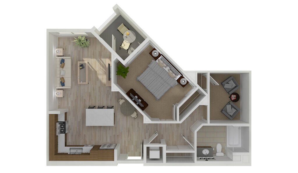 1 Bed, 1 Bath, 571 sq ftModel Gallery