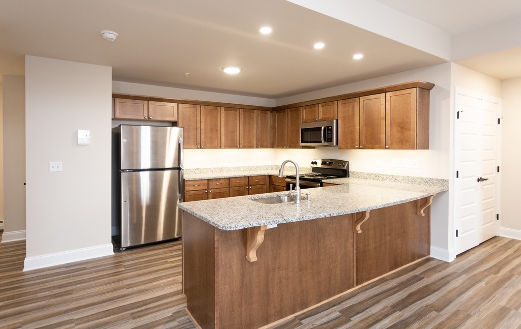 (2) AVAILABLE FOR DECEMBER 15TH AND FEBRUARY 15TH. 2 BEDROOM / 2 BATHROOM APARTMENT Apartment SF- 1,190. 1,210, and 1,240 SF +/- Available 12 Apartments on Floor 2 and 3 with granite counter tops, LED lighting, and stainless steel appliances! Majority of Building ADA Compliant – Large and spacious layouts! All 2 Bedroom Apartments (Call for Pricing)! Heat & Hot Water Included! Next to Brand New ALDI Grocery Store and walking distance to the village and lake! LARGE Storage Rooms Available for $100 per month.